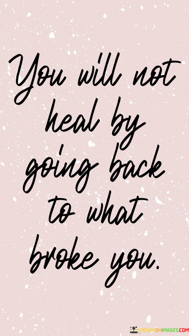 Healing requires moving forward, not revisiting pain. It's like walking away from a storm, not into it. Returning to what hurt you stalls recovery. Like a wound reopening, going back hinders healing progress.