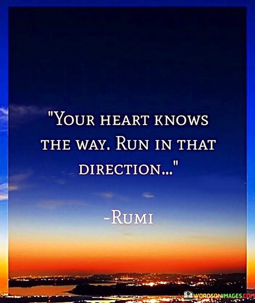 So, when faced with life's choices and challenges, pay attention to the whispers of your heart. It will lead you on a journey that resonates with your soul, ultimately taking you where you're meant to be. Trust that your heart knows the way, and running in that direction will bring you closer to your most authentic and fulfilling life.