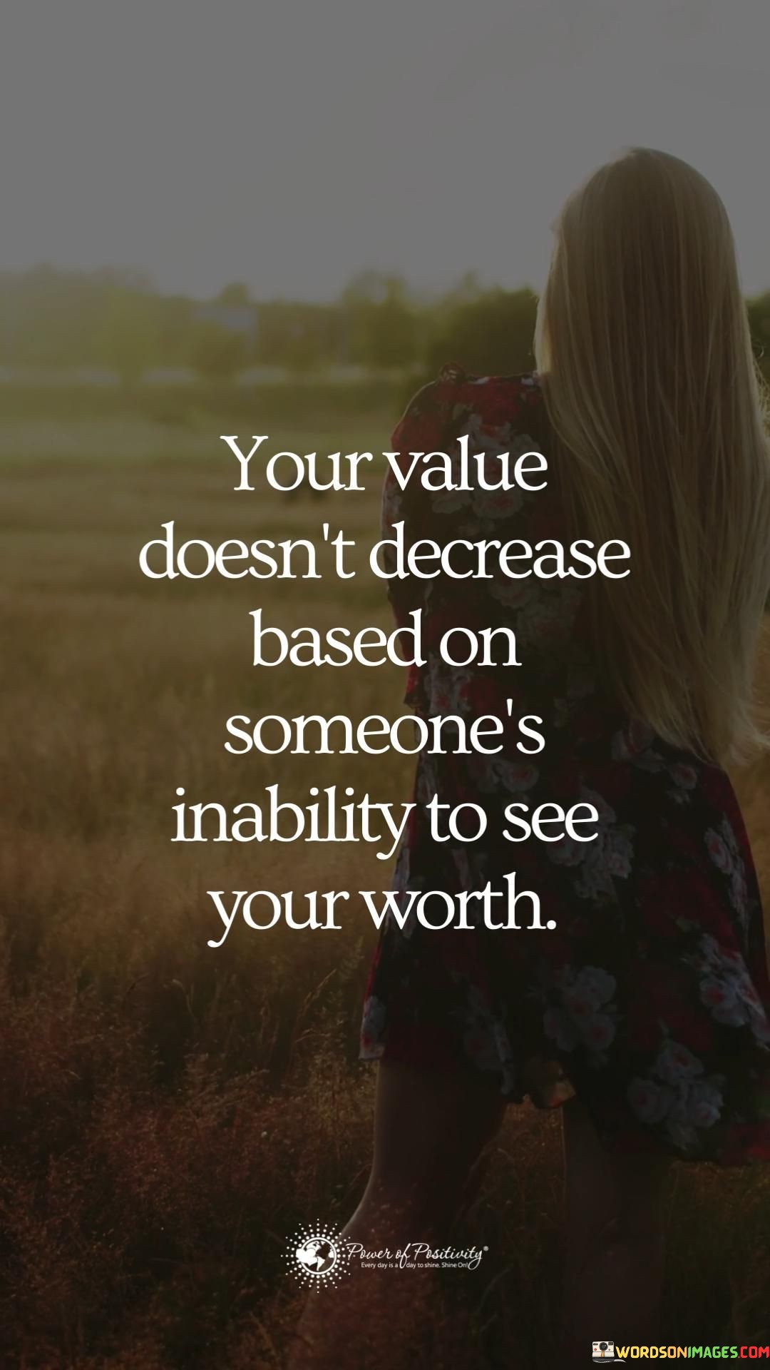 This quote, "Your value doesn't decrease based on someone's inability to see your worth," underscores the notion that our self-worth should not be determined by others' perceptions or opinions.