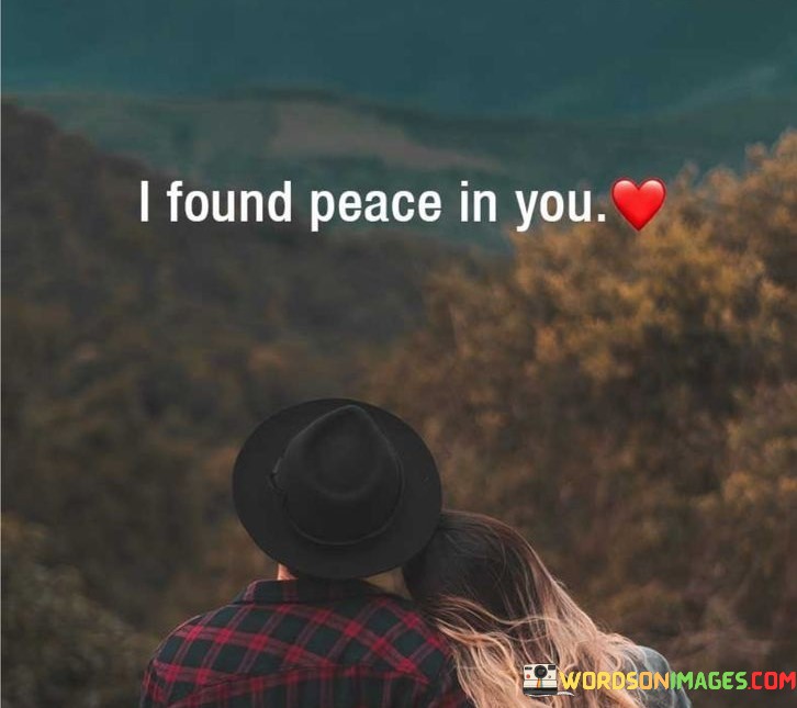 When I say "I found peace in you," I mean that being with you was like finding a quiet corner in the midst of a storm. Your companionship brought a sense of balance to my life. It wasn't just a fleeting feeling; it was a deep realization that your presence had the power to calm my restless mind and fill my heart with a peaceful stillness.